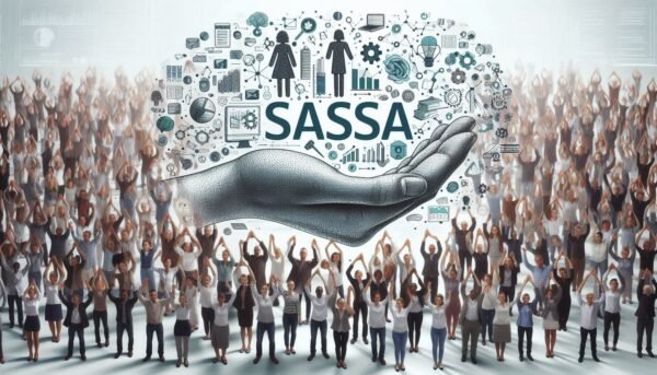 produce a group of people holding hand with words SASSA on it